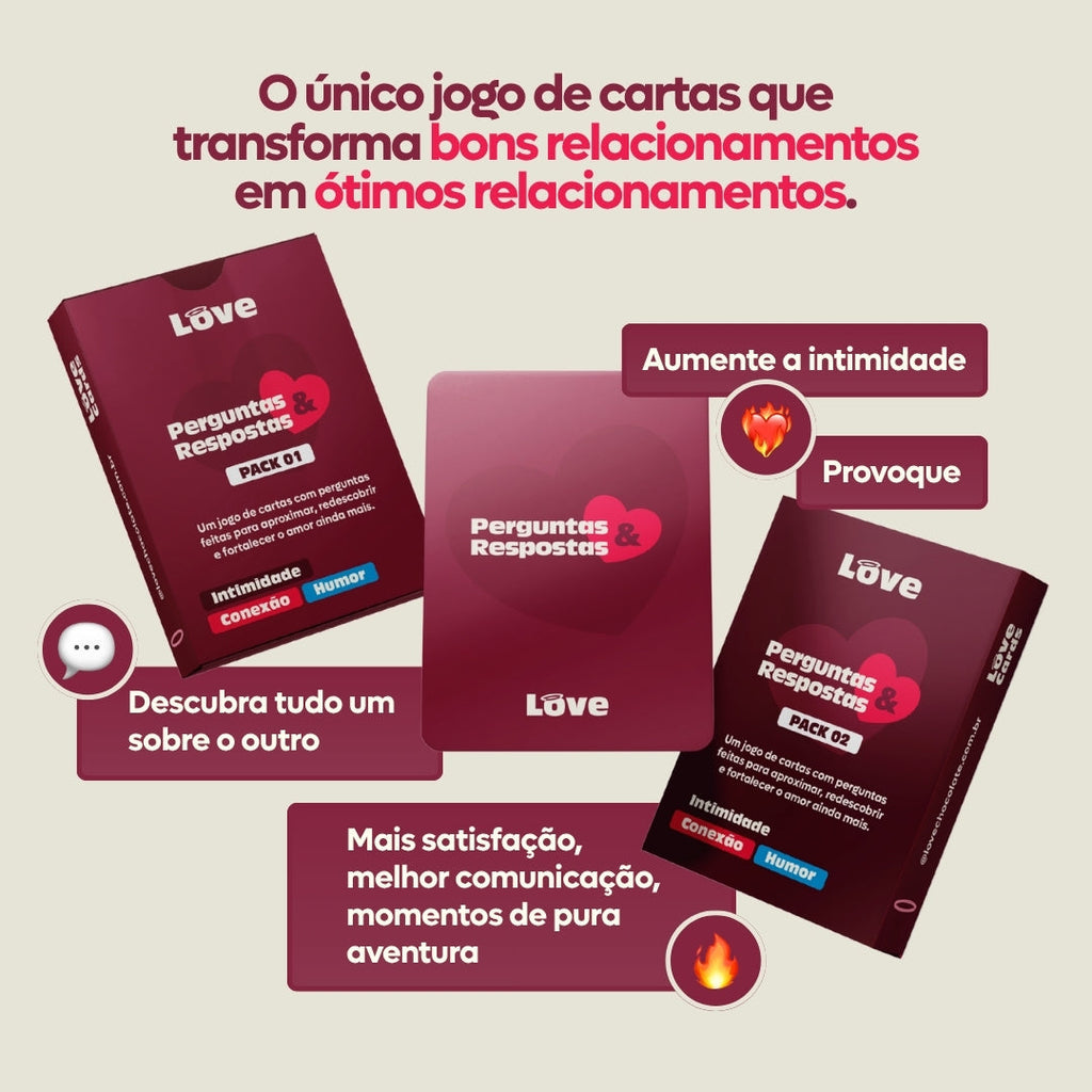 Como usar: Escolham um momento só de vocês, tirem uma carta alternadamente e deixem a conversa fluir. Sem julgamentos, só curiosidade e presença. O jogo funciona pra qualquer mood - desde domingos preguiçosos até noites que pedem mais calor.