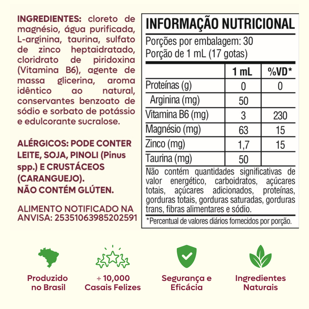 Dentro de cada gota, existe uma combinação inteligente de Magnésio, Zinco e Arginina, minerais essenciais que, juntos, atuam diretamente na libido, no controle hormonal e na energia sexual.